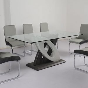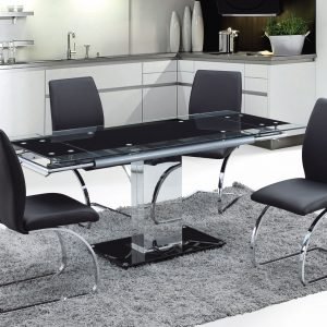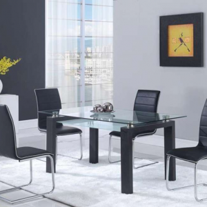 (1+6) Pc. Set Table with black glass top & powder coating legs