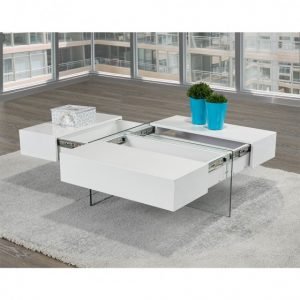 340-02 COFFEE TABLE W. 3 SIDE STORAGE WHITE