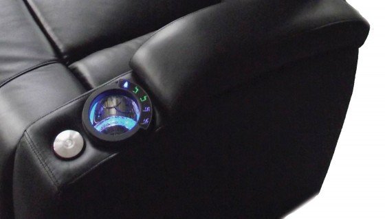 12019-3906 LEATHER/MATCH DUAL POWER RECLINER W/LIGHTED COOLER, ALUMINUM TRAY & STORAGE ARM 36.6 37.6 44.5 56 21.47