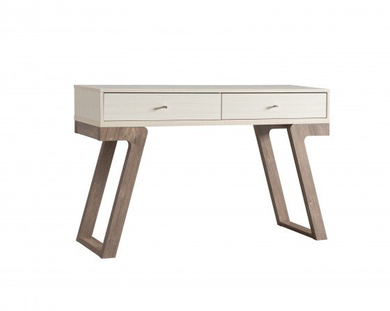 Add a fashionable focal point to your home furnishings with this sleek console table. The contemporary design features a rich two-tone color finish that is sure to catch the eye. The durable splayed leg base provides stability and an airy, modern look. Two convenient storage drawers give you plenty of space to store writing instruments, mail, keys and other small items. Place this contemporary console table in an entryway, home office, living room or anywhere you can make use of additional storage and display space.