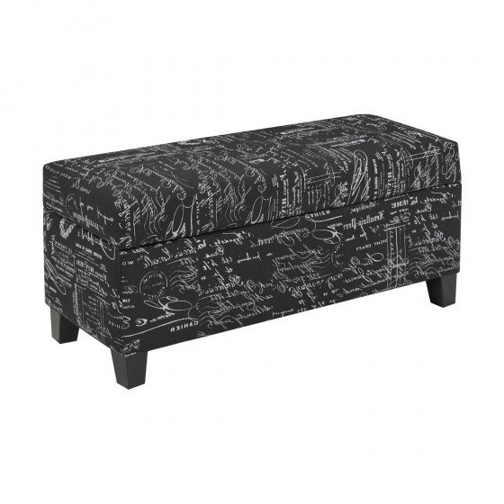 Creativity, functionality and stylish comfort  this storage ottoman holds that and much more. Wrapped in a beautiful stitched fabric, it features contrasting scripted text for visual interest. Inside, theres ample space for storing essentials of all kinds  for entryways, use it to hide away backpacks, umbrellas and seasonal clothing like hats and mittens; for living spaces, use it to store throws, pillows and other items you want to keep accessible but not on display. High-grade construction ensures durability and lasting comfort when used as additional seating in your home or office. **** Available in black scripted fabric.