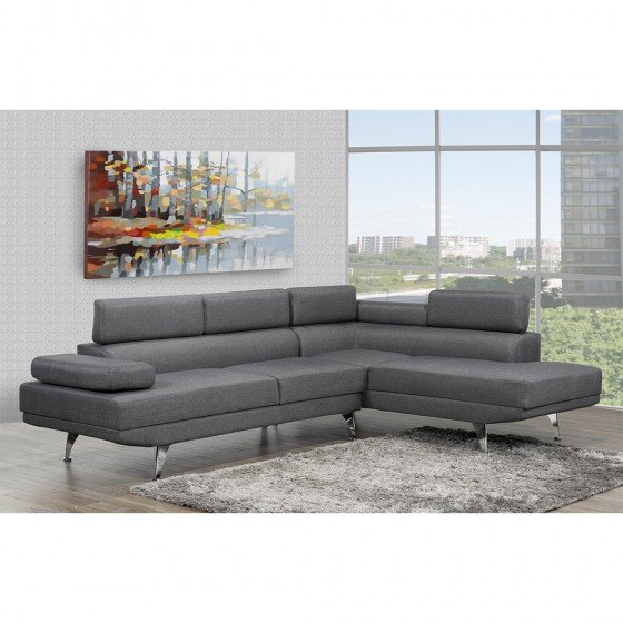 Bring stylish and comfortable seating to your living room or family room with the Aria sectional sofa. The sectional features contemporary styling with clean lines and a sleek, splayed leg design for an eye-catching appearance. At the same time, its neutral-colored, rich fabric cover easily blends with an array of interiors and existing furnishings. Functional as well as fashionable, the versatile sectional has an adjustable back and arms, so you can create your ideal seating setup. Crafted for comfort, the sofa has pocket coil and foam construction for supportive comfort you can relax back into.