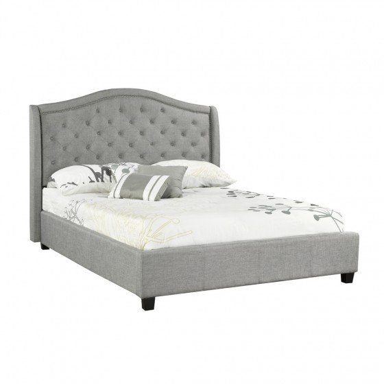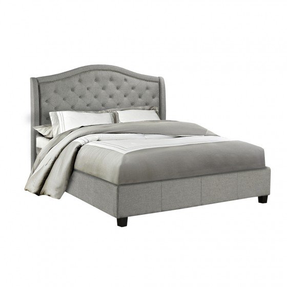 Youll be looking for any excuse to go to bed when you introduce this stunning bed to your slumber space. Very modern yet upholding traditional appeal, this bed frame is wrapped in tightly woven, textured fabric, and sits atop solid, low profile feet. The headboard commands attention with its diamond-grid tufting and studded detail. A hint of luxury balances beautifully with this incredibly attractive bed.
