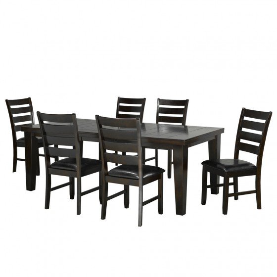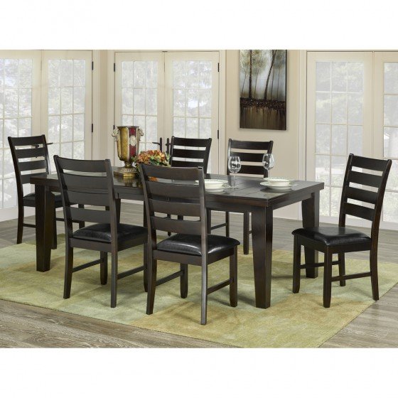 You can never go wrong with a classic – bring back a traditional look to your dining room with this stylish Rosemount dining set. The rich dark colour tones fits into both contemporary and traditional d?cor, making this dining set an ideal addition to any home. The sturdy dining table can seat 6-8 people comfortably, while the cushioned seating and slat back chair design more comfortable seating for everyday dining or dinner parties. The paneled table top design adds a touch of classic style that can easily suit your existing room decor.