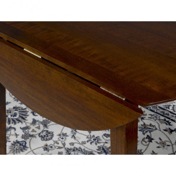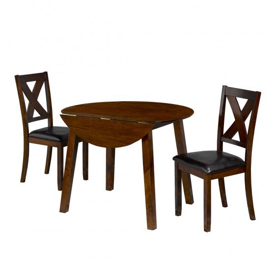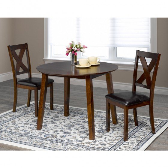 Create convenient seating for light meals and cozy conversations with this three-piece drop leaf kitchen set. Featuring a simple wood design in a dark espresso finish, the table and chairs effortlessly blend into most aesthetics and bring classic elegance to any space. The table’s two-sided drop leaf allows you to adjust the size to suit your space and makes it ideal for smaller areas. Made of rubber wood and birch veneer construction, the three-piece set offers durability you can rely on for regular use. Complete with two cross-back chairs with comfortable vinyl seats, this kitchen set adds a touch of traditional charm to your kitchen or breakfast room.