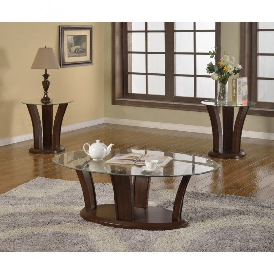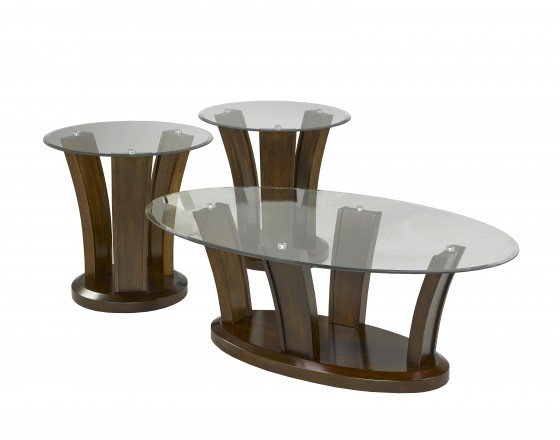 Traditional d?cor no longer has to be boring. This three-piece coffee table set features a richly toned faux wood base that gives the illusion of height and supports a tempered glass tabletop. Elliptical lines keep the look clean and refined, while the contrasting elements lend subtle brilliance to your space. With ample surface area, these tables provide plenty of space for your entertaining and living needs.