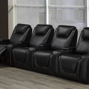 Whatever film youre watching, these beautifully appointed theatre seats will win the Peoples Choice Award for comfort and style, featuring in a timeless classic design for a look that lasts. The power reclining sofa lets you put your feet up and relax in style while a stylish cup holder adds extra charm to it. The theatre seats are available with a handsome and easy to clean aire-leather material and a luxurious dark patina for a dramatic look.