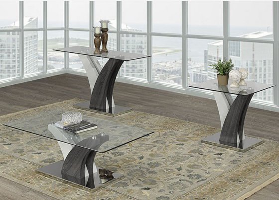 Create a stunning focal point in your living space with help from the sleek and stylish Jerome coffee table series. This elegant table has a fresh, contemporary look that will instantly update your d?cor while still being neutral enough to complement your existing furnishings. The unique design features a chrome-plated base with curved white and grey supports. A 12mm tempered glass top adds an airy look that will be perfectly at home in any modern interior.