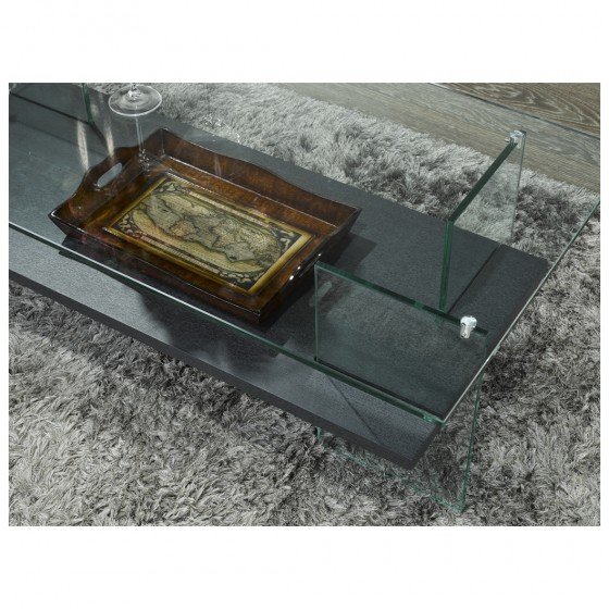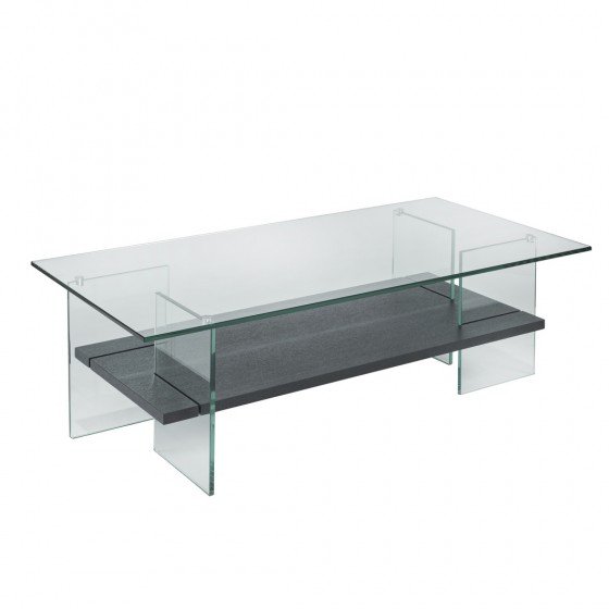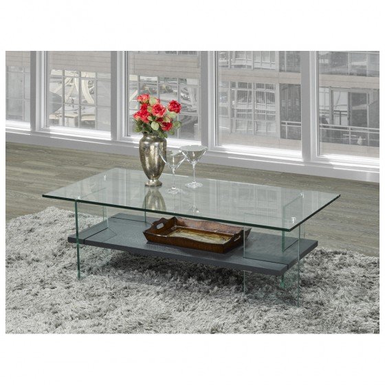 Add a chic modern update to your living space with this contemporary coffee table. Constructed with a neutral grey shelf and a tempered glass top and frame, this fashionable table is versatile enough to fit seamlessly into any modern d?cor or color scheme. While the chic glass construction provides a minimalist feel, this elegant coffee table also offers ample storage space with an open-shelving design that complements the airy overall look. Display your favorite magazines, store remotes, or keep snacks and beverages close at hand while entertaining, theres plenty of space for it all with this convenient and attractive table. A sophisticated choice for a living room or family room, this sturdy coffee table makes a stylish impression without overwhelming your space or distracting from your other furnishings.