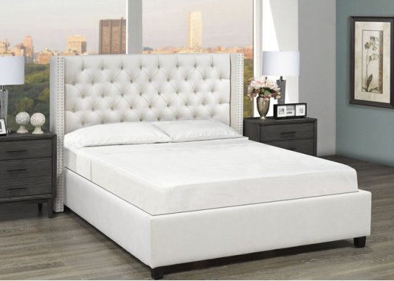 A lower profile bed, in a clean ivory fabric, with a studded detail makes for the perfect addition to a minimalistic aesthetic in your bedroom. The diamond-grid, pleated tufting creates a comfortable and inviting look for your next slumber. Canadian craftsmanship ensures the longevity for your investment in a better sleep.