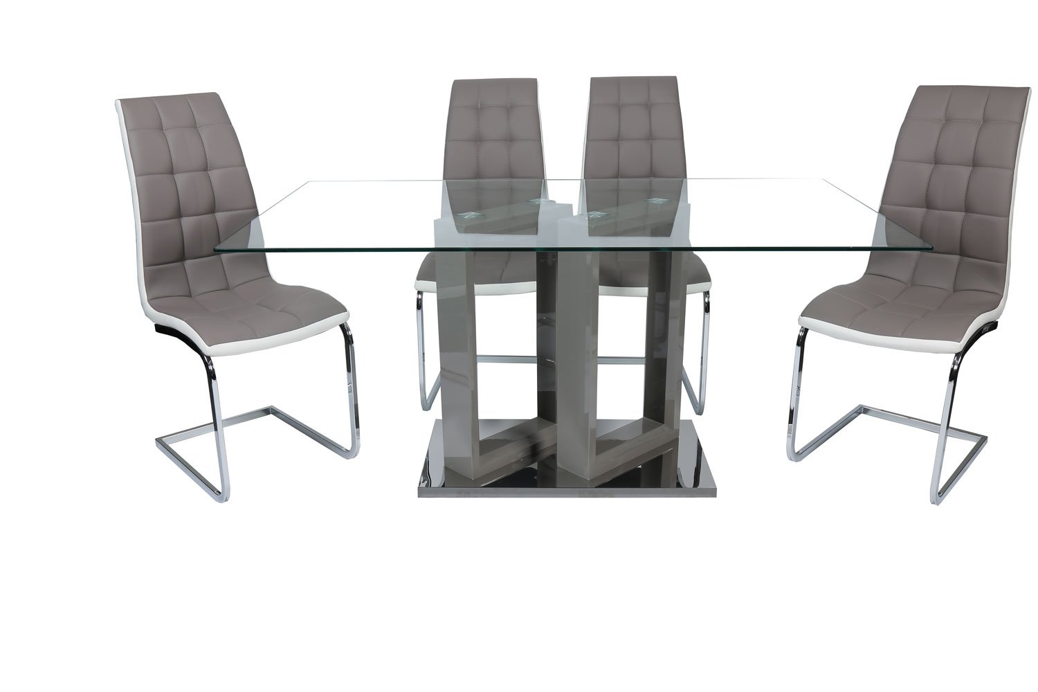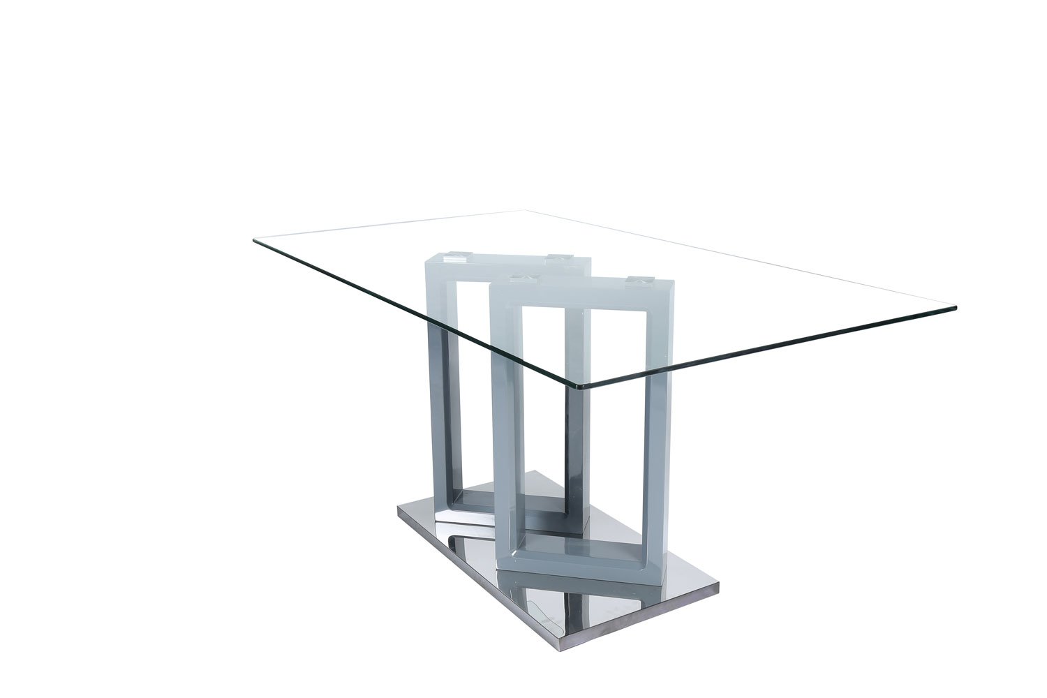 Tempered clear glass 12mm, middle legs in High gloss and stainless steel base plate.