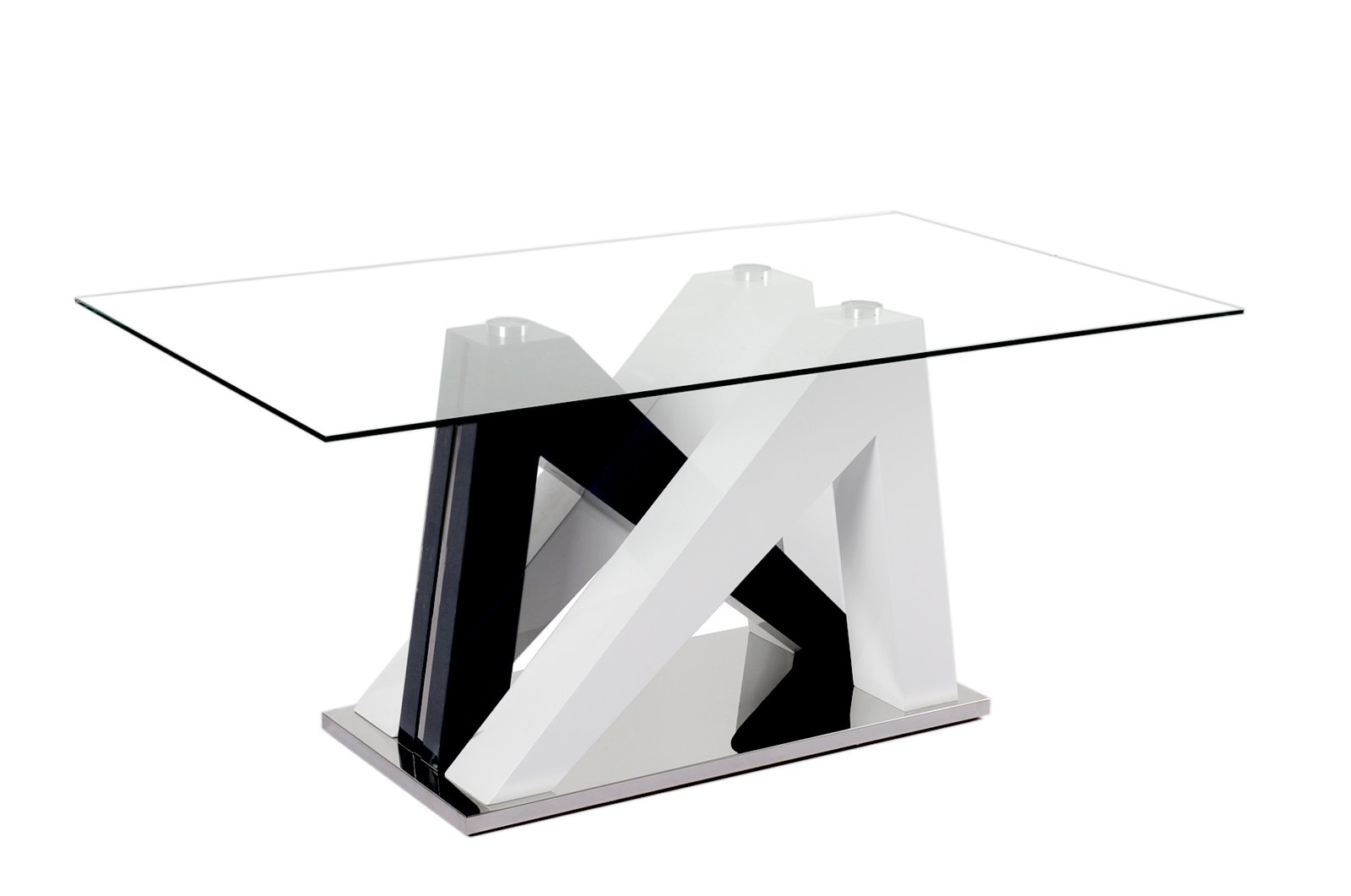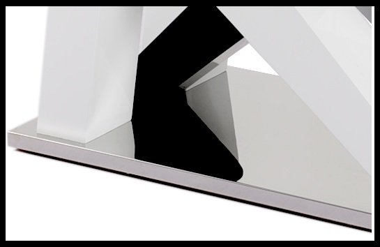 Clear Tempered Glass Table top, High gloss frame in White & Dark Grey color & Stainless Steel Side strips and Base plate.