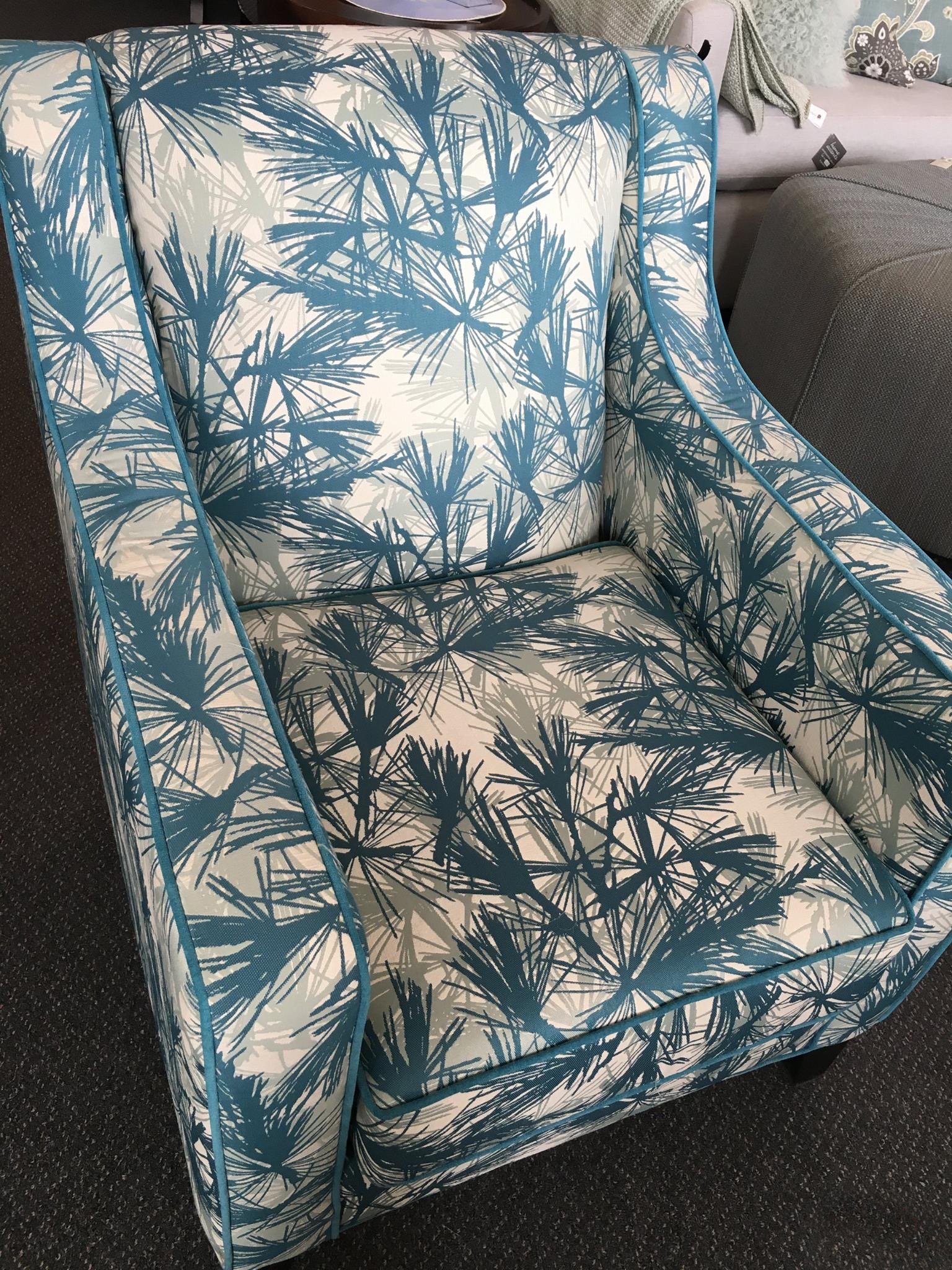 Turquoise and Ivory Printed Fabric Accent Chair