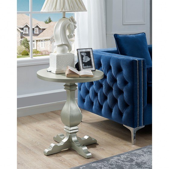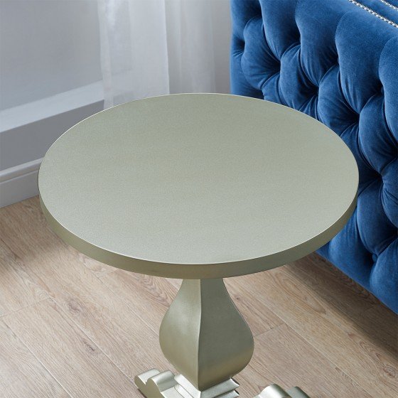 Complete the look of your traditional living space with the attractive and convenient Maddison accent table. Crafted from solid wood & veneers, this sturdy table is designed to stand up to regular use with lasting durability and style. The round, 22-inch tabletop provides plenty of space for a lamp, photo, beverage or other practical or ornamental items. With its 1.18-inch thickness, the tabletop has a sturdy look that complements the impressive, decorative base. It’s available in a classic off-white color that blends effortlessly with existing furnishings and d?cor schemes.