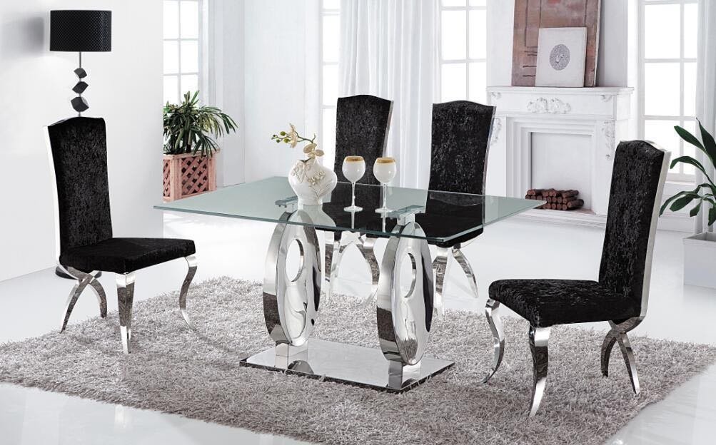 Description:?Clear tempered glass top and legs in shinny stainless steel.