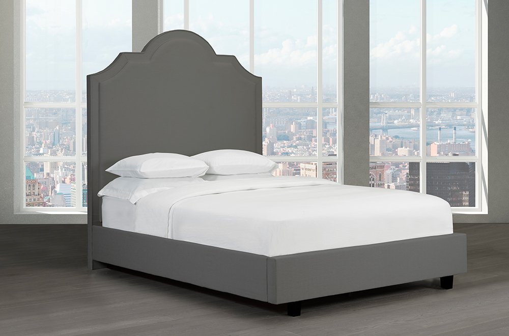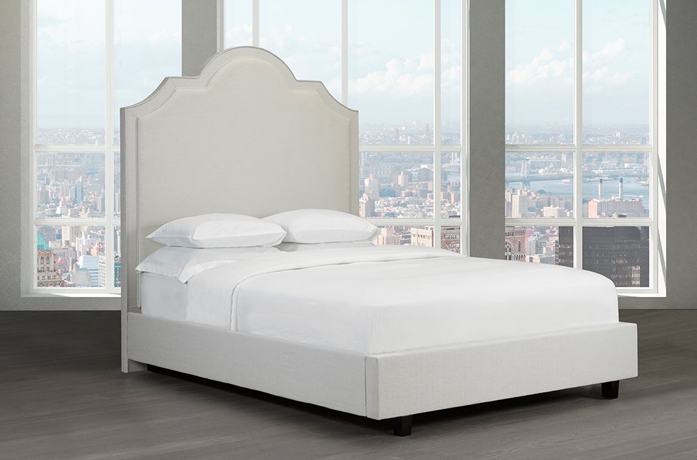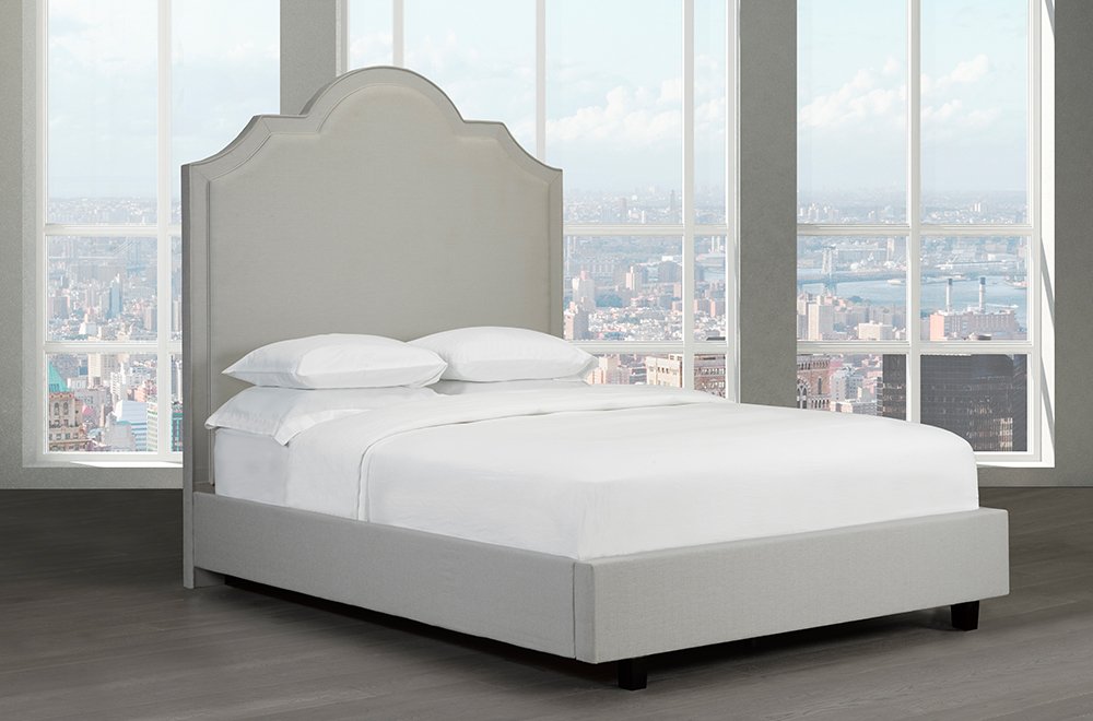 Raise your bedroom to the next level with this impressive headboard and bed. Visually impactful, with a tall headboard, a regal, bevelled-cut top and deep-cushioned inset.