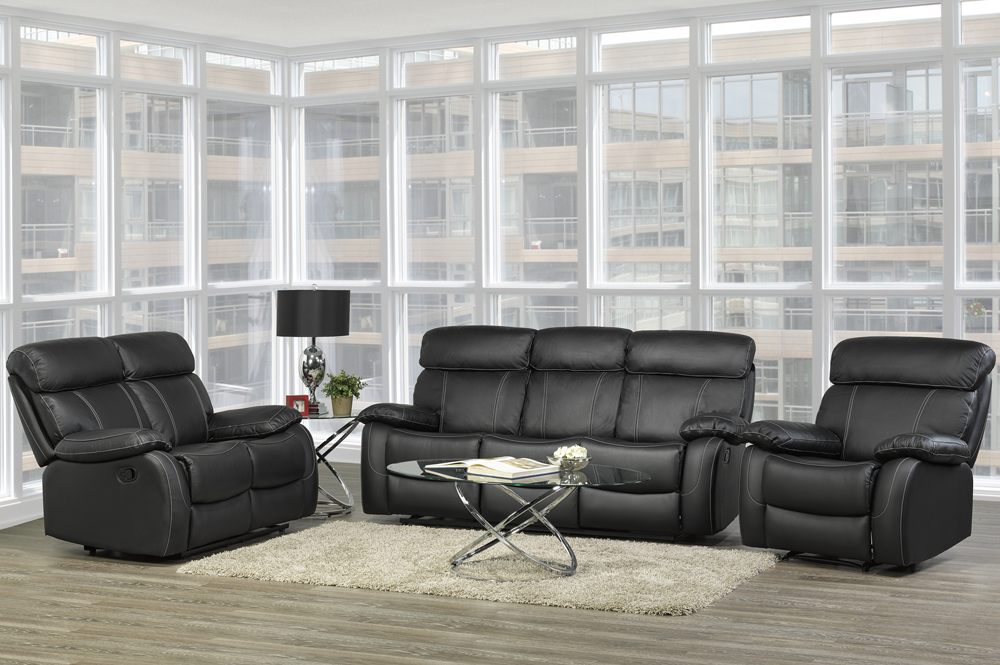 | T-1410-SET Reclining Sofa Set | Genuine Leather/Match | Black | |