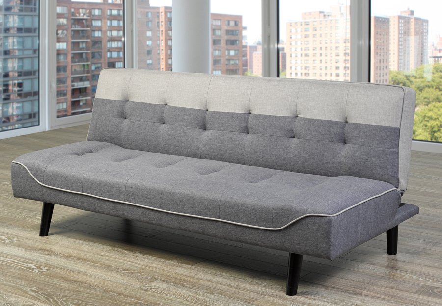 Unique and retro, this klick klack has a classic, two-tone design and includes lush cushioning with tufting. Boasting a simple transition process, this piece is the perfect blend of form and function. Linen-style fabric- two-tone grey.