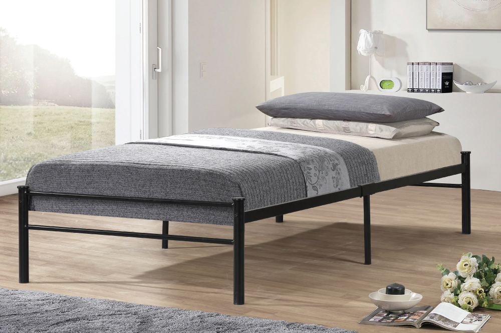 Bed includes metal slats, centre support and strong, metal frame. No boxspring required.