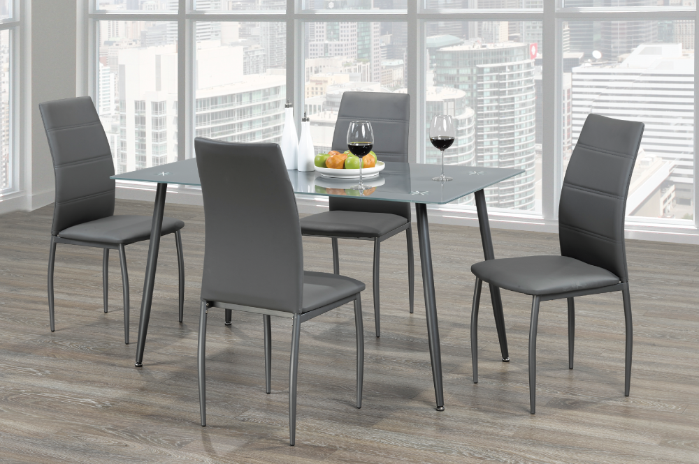 T-3600-SET 5 Piece Dining Set Glass Frosted Grey