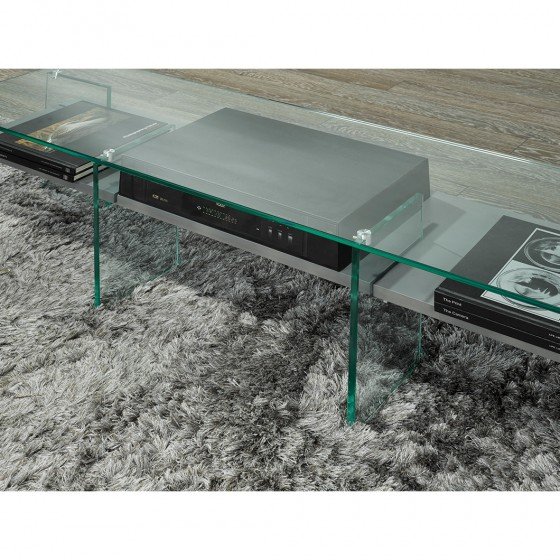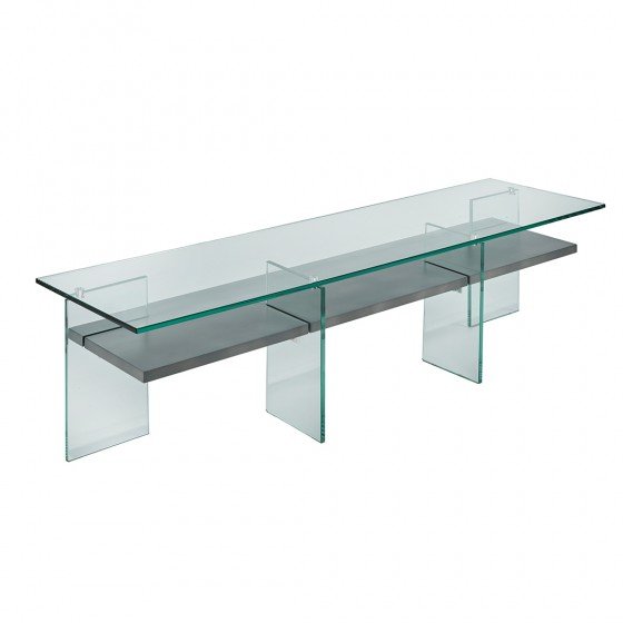 Instantly update your living space with this contemporary 55 TV stand. The combination of a neutral light grey shelf with a tempered glass top and frame fits seamlessly into any modern d?cor and color scheme with ease. While the chic glass construction gives an open and minimalist feel, this generous TV stand is large enough to comfortably accommodate most flat panel TVs of up to 55 inches. This sleek unit also offers ample storage space for all of your audio and video components, while keeping them easily accessible with the open-shelving design. An elegant choice for a living room, family room or media room, this sturdy TV stand makes a stylish impression without overwhelming your space or distracting from your other furnishings.