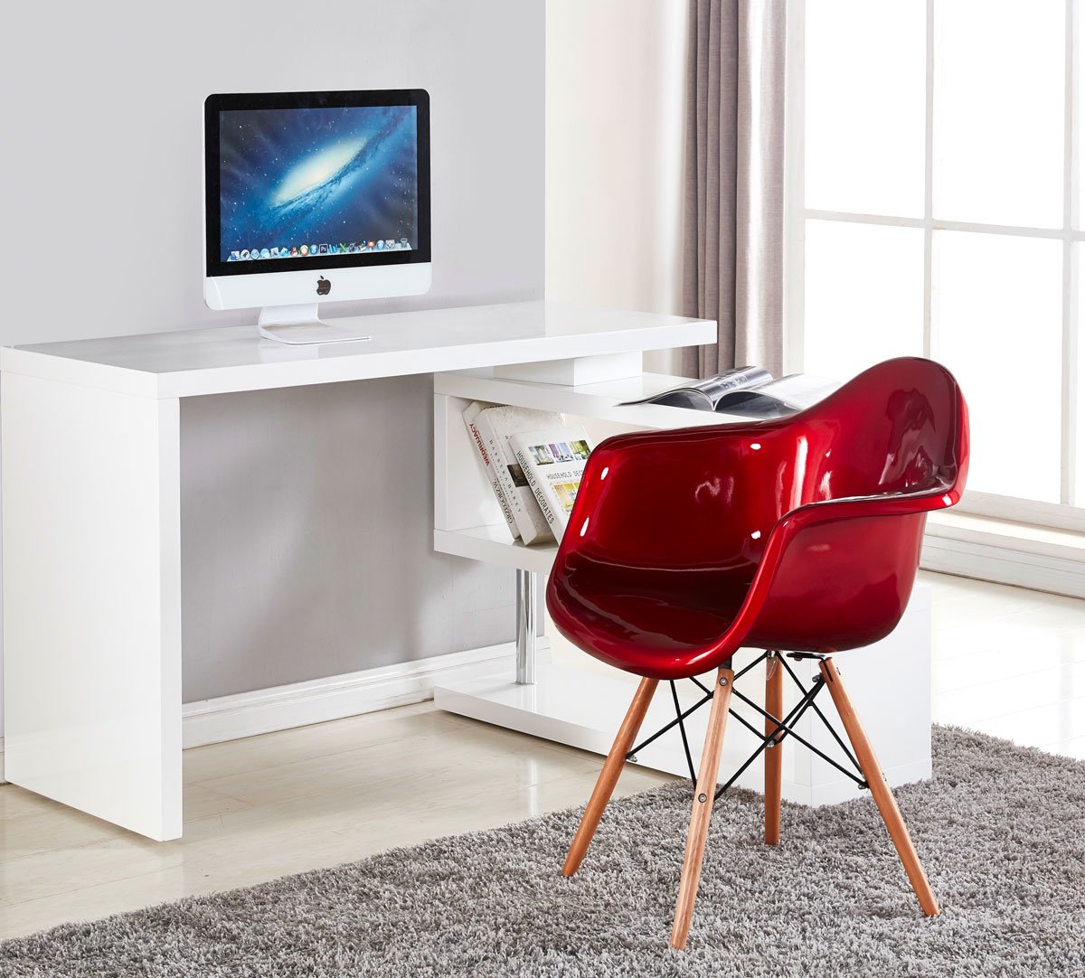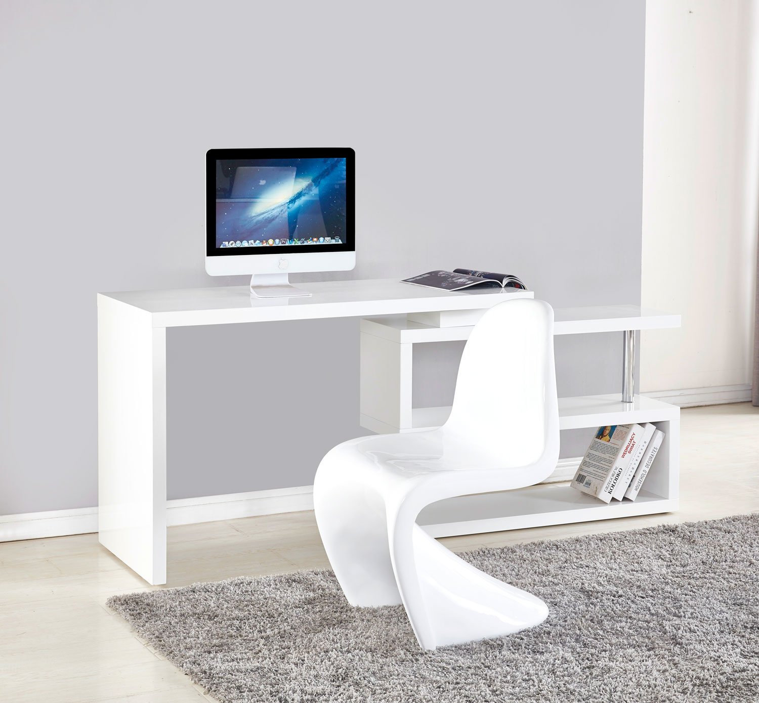 Description: White high gloss lacquer with extendable/adjustable book rack.