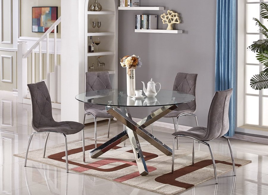 Description: Clear tempered 10 mm glass table top with square stainless steel tube legs.