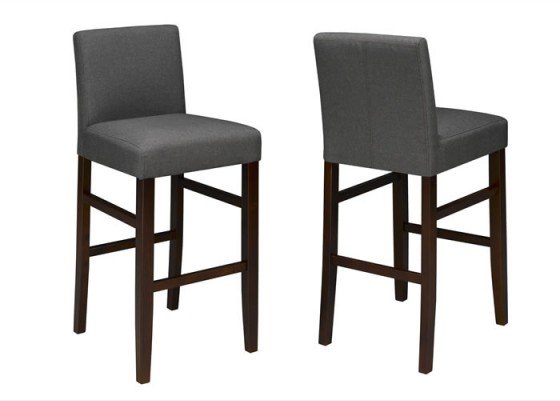 The term elegant isnt often used to describe a bar stool but it is one of the best ways to describe this pair of counter stools. Luxuriously soft seats and chair-backs are upholstered in durable and easy to maintain polyester fabric, while the rich & sophisticated colour is sure to best complement your d?cor. Quality crafted legs feature a footrest and provide solid support for everlasting comfort and enjoyment.