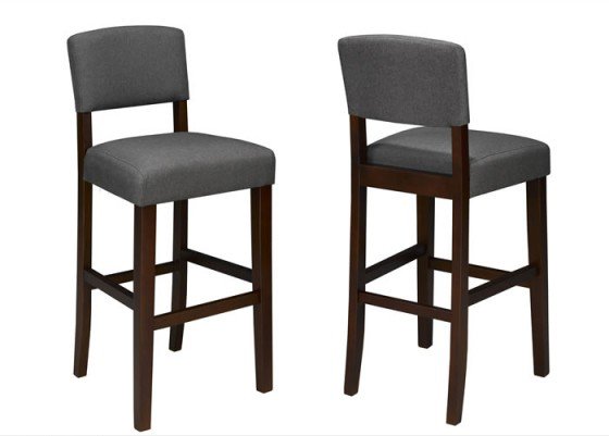 Attractive and comfortable, this set of two bar stools is perfect for the basement bar, breakfast counters in the kitchen, and small apartments and condos with limited floor space. High quality materials lend themselves to the construction, ensuring durability and support for lasting enjoyment. The seats and raised chair-backs are padded well with soft cushioning; and they are upholstered in luxuriously smooth polyester fabric that is maintenance-free and easy to clean. Modern design and always-on- trend colours make this pair of stools a popular choice.